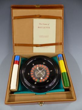 L S Mayer (London) Ltd The Game Of Roulette set with wheel, mat and chips, in fitted leather case with instruction booklet.