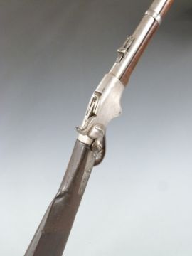 Spencer model 1865 .50 calibre underlever repeating percussion hammer action carbine rifle with pop-up ladder sights, stock stamped with indistinct markings, belt loop, top flat stamped 'Spencer Repeating Rifle Boston Mass Pat'D March 1860' and 22 inch barrel, overall length 99cm, serial number 38561.