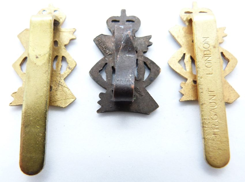 Three British Army 13th Hussars metal cap badges, one by Gaunt