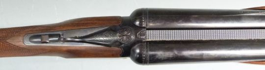 Browning 20 bore side by side ejector shotgun with engraved lock, thumb lever, underside and trigger guard, chequered grip and forend, single trigger and named 28 inch barrels choked ¼ and ¾, overall length 108cm, length of pull 36cm, serial number 03491RR368. PLEASE NOTE THAT A VALID RELEVANT FIREARMS/SHOTGUN CERTIFICATE IS REQUIRED TO HANDLE/PURCHASE THIS ITEM.