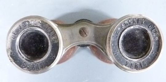Ashmore & Osborne three draw brass telescope, maximum length 78cm and a pair of Jockey Club Paris binoculars