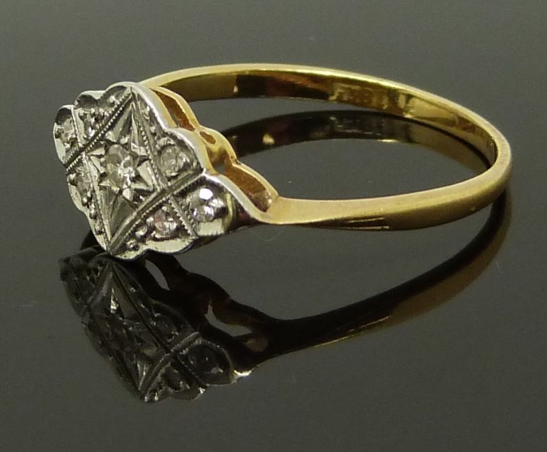 An 18ct gold ring set with diamonds in a platinum setting, size N, 2.10g