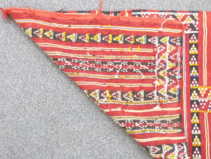 Runner with deep red ground and geometric pattern, 290 x 75cm