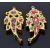 A pair of Indian yellow metal pendants set with enamel to one side and foiled rubies set to the other, 2.3 x 1.1cm