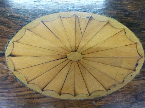 Victorian rosewood Sutherland table with inlaid decoration, maximum size W81 x D55 x H64cm