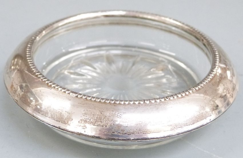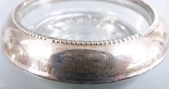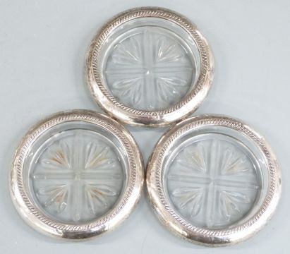 Set of eight white metal mounted glass coasters, each marked Frank Whitting & Co. Sterling, together with three similar examples marked B.Rogers Silver Co. Sterling, diameter 9.5cm