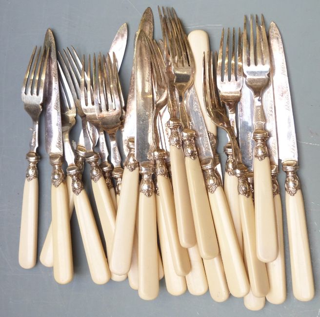 Quantity of silver plated, mother of pearl handled and hallmarked silver handled cutlery