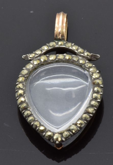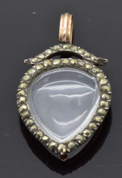 Victorian heart shaped locket / pendant set with marcasite, 1.5 x 2.7cm