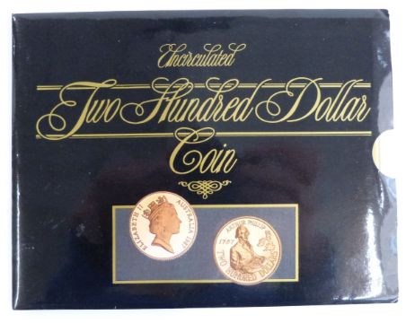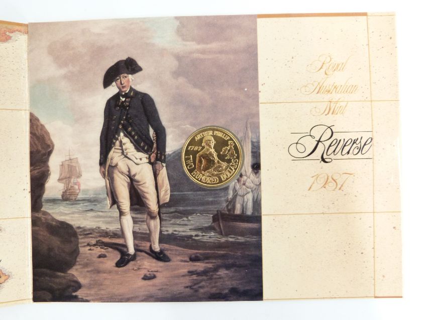 QEII 1987 Royal Australia Mint gold $200 uncirculated coin in presentation pack, Arthur Philip reverse