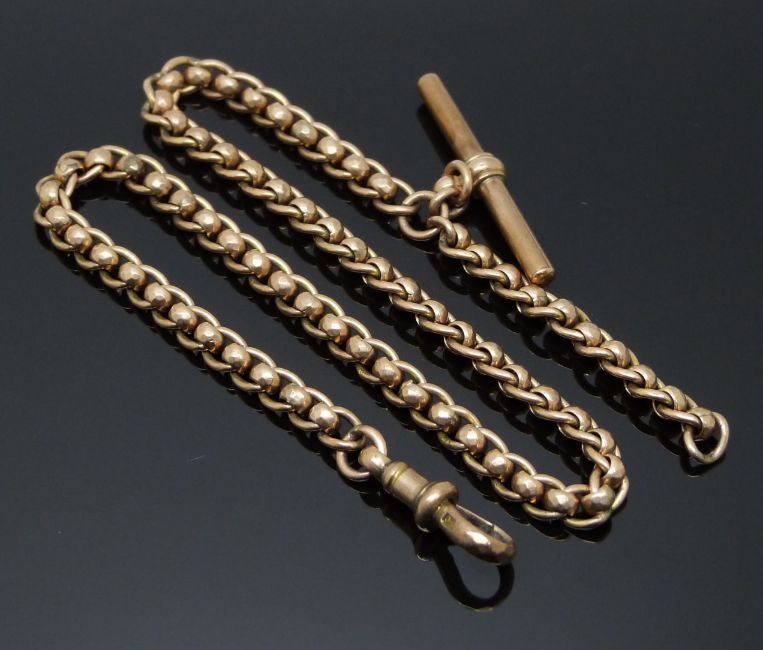 A 9ct rose gold fob/ Albert made up of faceted circular links, 22.5g