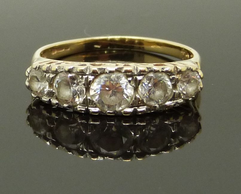 A 14ct gold ring set with cubic zirconia, the setting reading 'I love you', size N, 2.79g