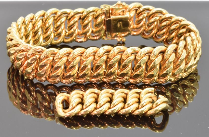 An 18ct gold bracelet made up of rope twist links, with six spare links, 50.8g