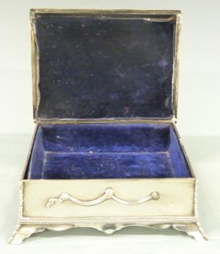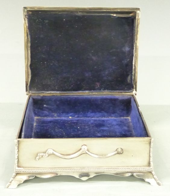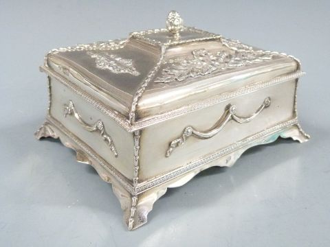 Edward VII hallmarked silver jewellery box with embossed decoration, London 1904 maker William Comyns & Sons, width 15,5cm
