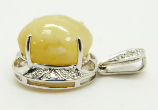 A 9ct white gold pendant set with an oval cat's eye opal cabochon and diamonds, 4.4g