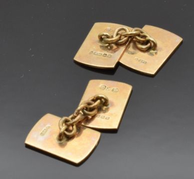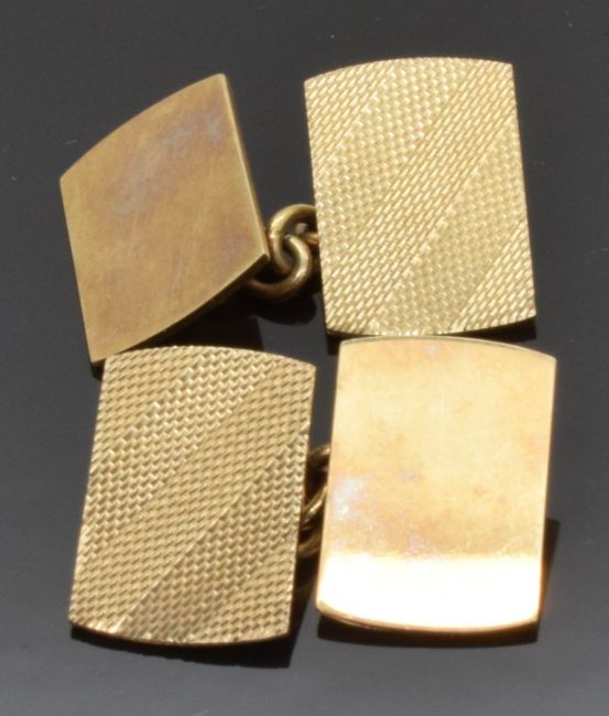 A pair of 9ct gold cufflinks with engine turned decoration, 7.2g