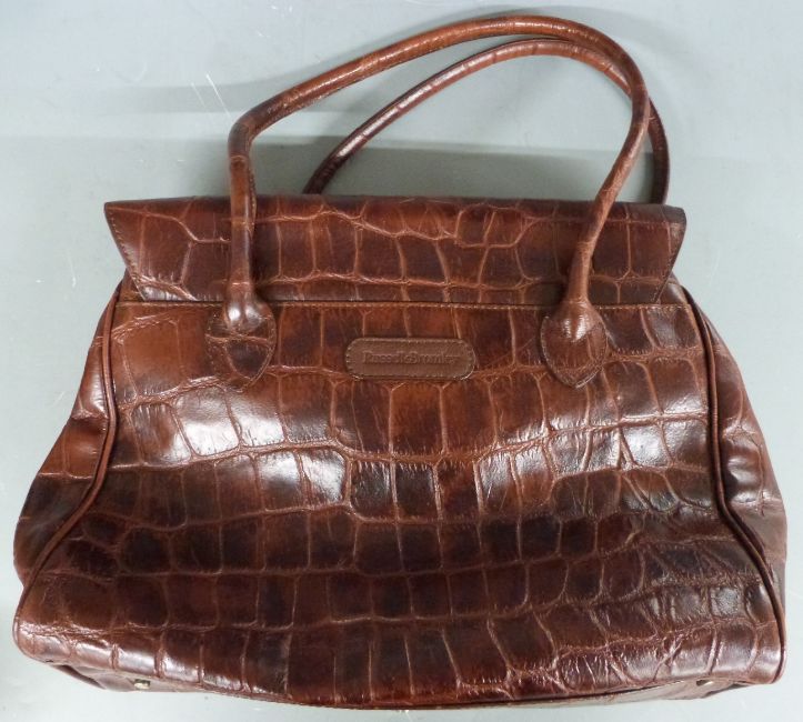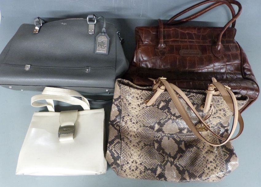 Ralph Lauren grey leather ladies bag, Russell & Bromley 'Birkin' style brown leather bag, Michael Kors crocodile print tote bag and a vintage Ferragamo example