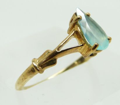 A 9ct gold ring set with a pear cut Paraiba opal, 1.7g, size N