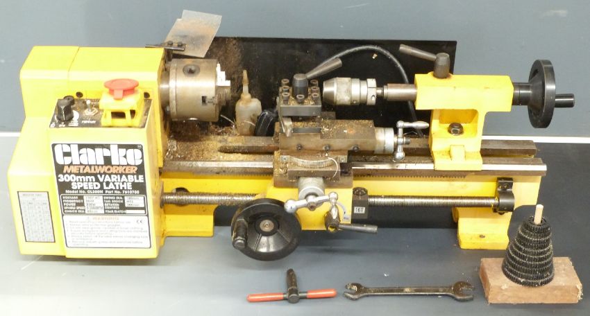 Clarke Metalworker 300mm variable speed model engineering or similar lathe with three jaw chuck, screw thread cutting function and extra gearwheels