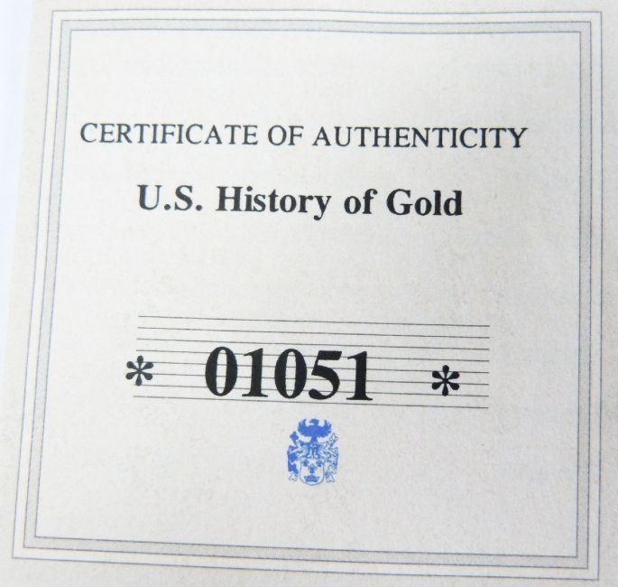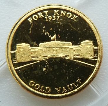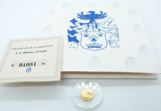 U.S History of Gold miniature gold coin depicting Fort Knox 1937 with certificate, 0.5g