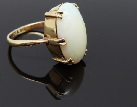 A 9ct gold ring set with a large opal cabochon, size L/M, 4.22g