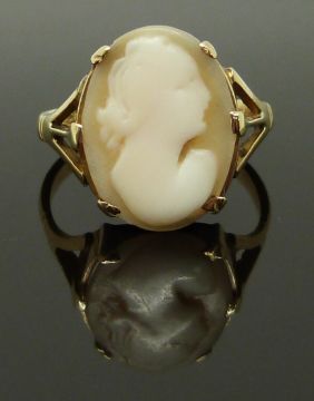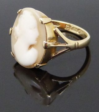 A 9ct gold ring set with a cameo, size N, 2.63g
