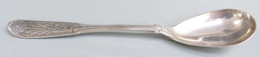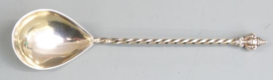 Cased set of 12 gilt metal spoons and two Swedish silver spoons, weight 43g
