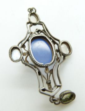 Arts and Crafts pendant set with a blue agate and moonstone cabochons