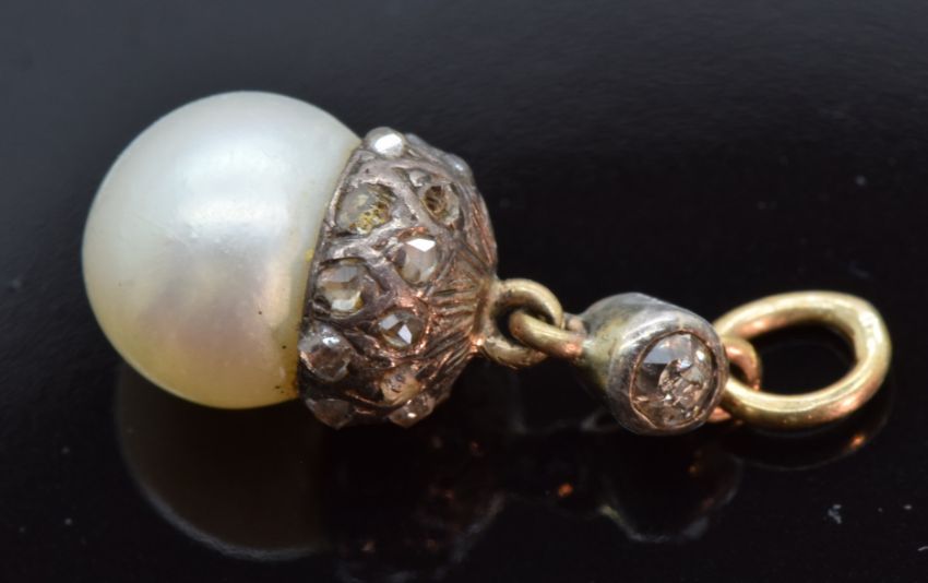 Victorian pendant set with a pearl and old cut diamonds, 1.7cm