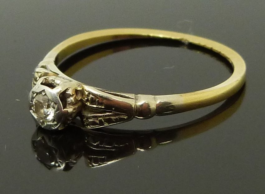 An 18ct gold ring set with a diamond in a platinum setting, size P, 2.21g