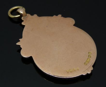 A 9ct rose gold fob set with an enamel pigeon, Birmingham 1930, 11.2g