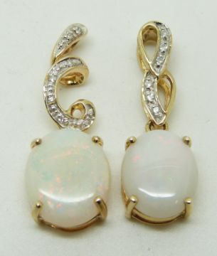 Two 9ct gold pendants set with an oval opal cabochon and diamonds, 2.8g