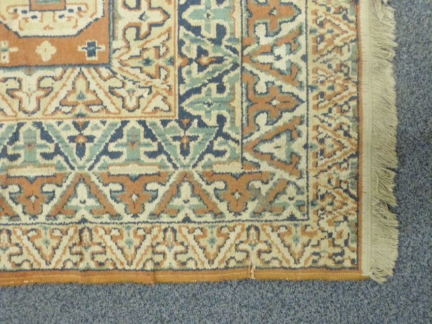 A large Turkoman rug on brown ground with four geometric borders, 220 x 250cm