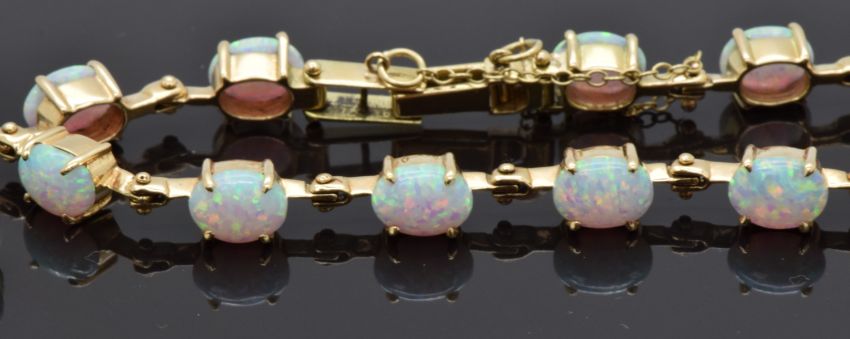 A 14ct gold gold bracelet set with opals and a matching pair of earrings