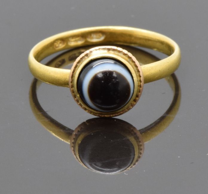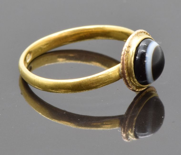 Georgian ring set with a banded agate cabochon, London 1813, size J, 1.96g
