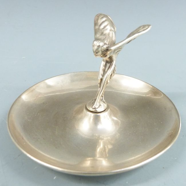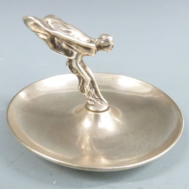 Rolls Royce car showroom or promotional ashtray, diameter 11cm and cigarette box with applied RR to lid, width 17cm
