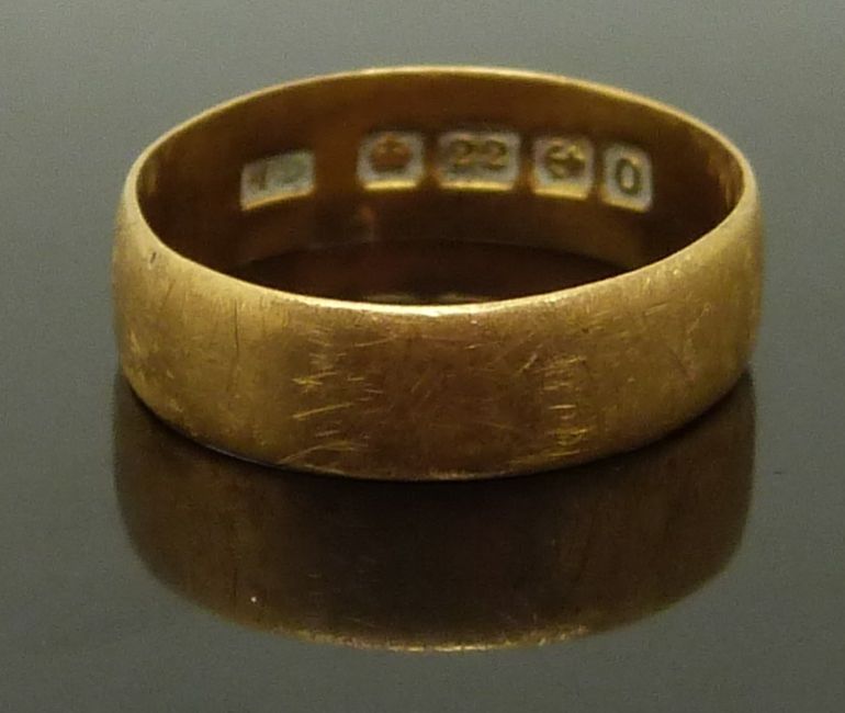 A 22ct gold wedding band/ ring, size M/N, 3.26g