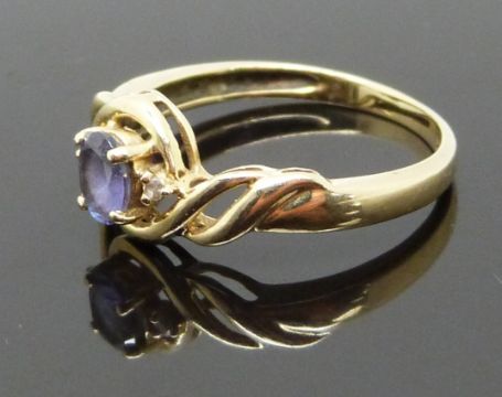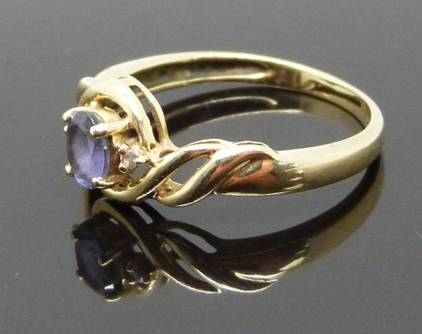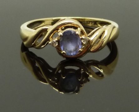 A 14ct gold ring set with a tanzanite and diamonds, size L, 1.89g