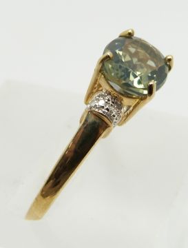 A 9ct gold ring set with a green fire opal and diamonds, 1.9g, size N