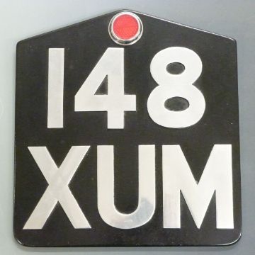 Aluminium novelty oversized motorcycle number plate, height 35cm together with a wooden casting pattern for the plate