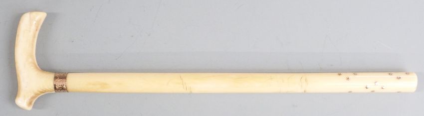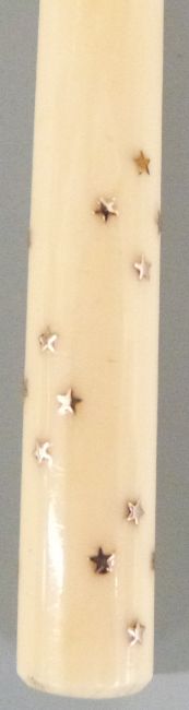 Ivory miniature walking stick with gold studded decoration formed as stars, length 16.5cm