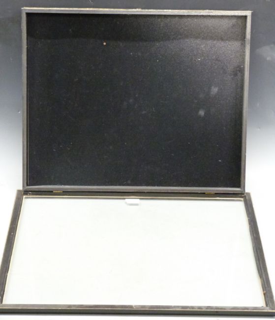 Three table top or wall mountable glazed display / collector's cabinets, each 54 x 66 x 4.5cm
