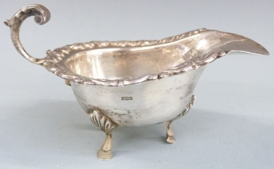 Egyptian white metal sauce boat, with Egyptian silver marks, length 17cm, weight 199g