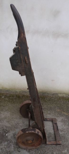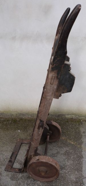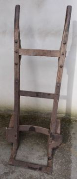 Early 20thC large mahogany and cast iron railway porter's heavy duty sack truck, the cast iron wheels with 'HMC' to inner rims, H147, W58cm