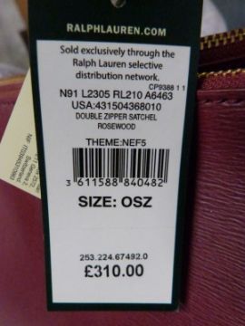 Lauren Ralph Lauren double zipper satchel bag in rosewood colour, with original labels and wrapping, new and unused, 40 x 38cm