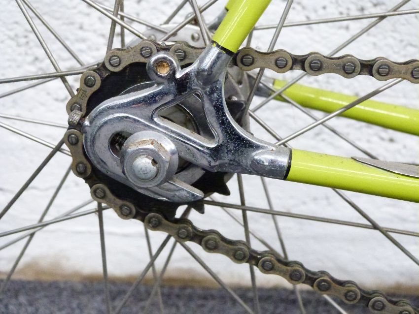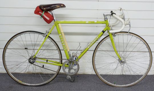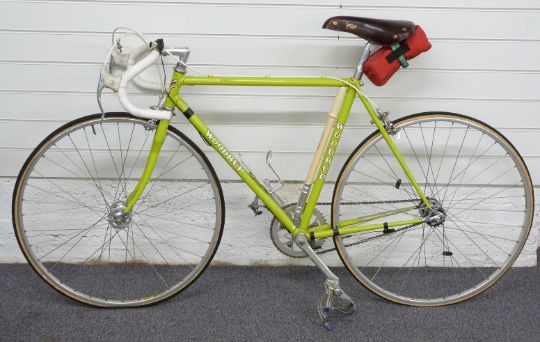 Woodrup 'Apples' vintage road bike with campagnolo brakes and seat, fixed gear drive train and Mavic rims, 51cm frame