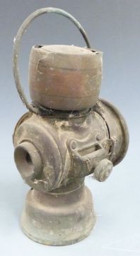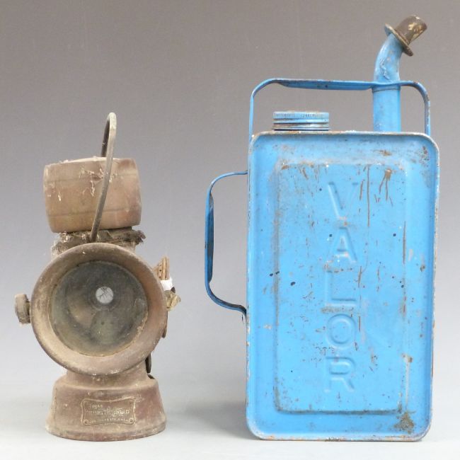 Veteran or Vintage Lucas 634 King of the Road car or similar lamp, height 26cm and a Valor fuel can