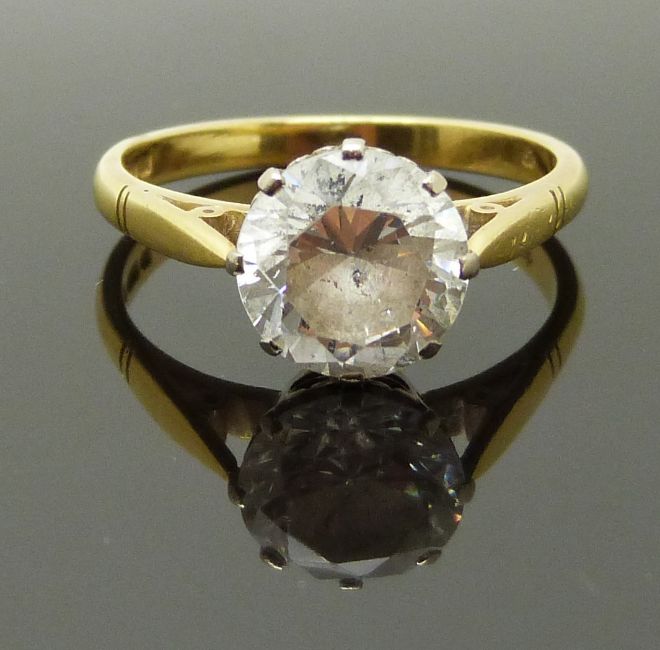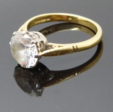 An 18ct gold ring set with a round cut cubic zirconia, size P, 4.65g