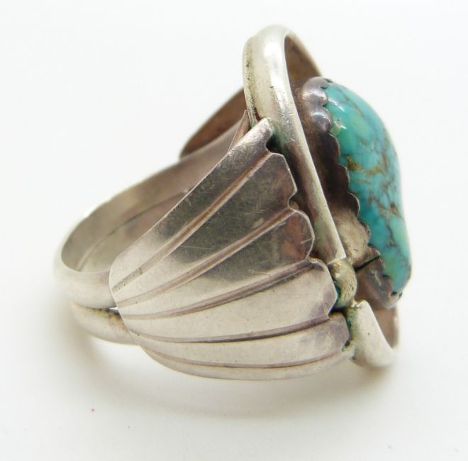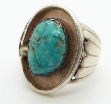 A c1880 native American Navajo ring set with turquoise, size T/U