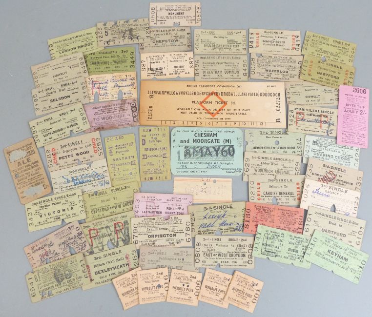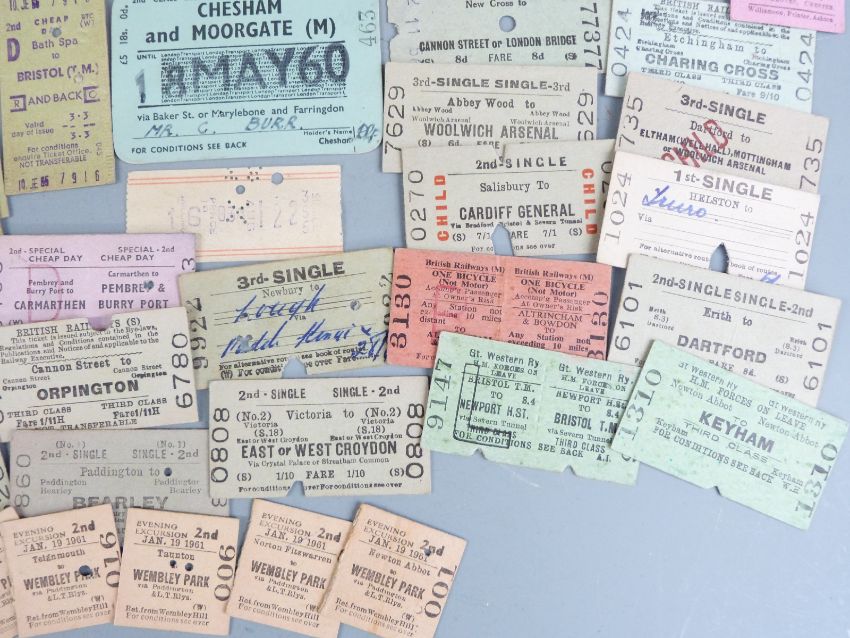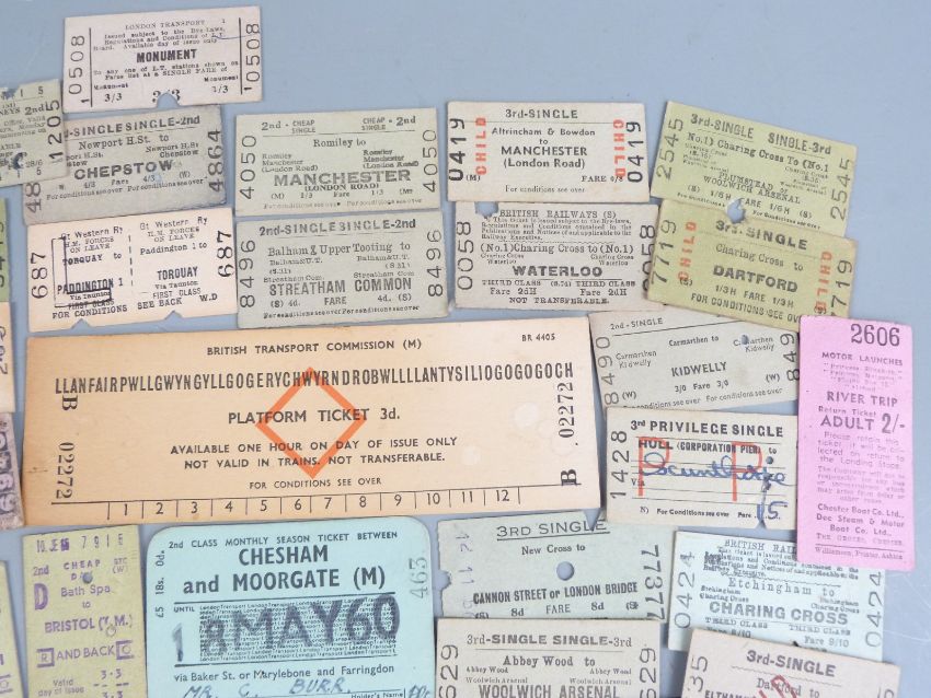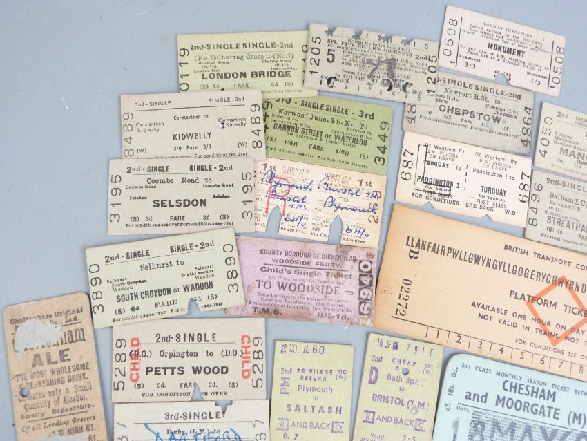 Various circa 1950s and 1960s train and other tickets to include British Railways, Great Western, Cheltenham & District Light Railway, Chester Boat Co. Woodside Ferry etc