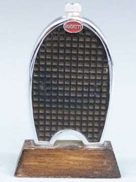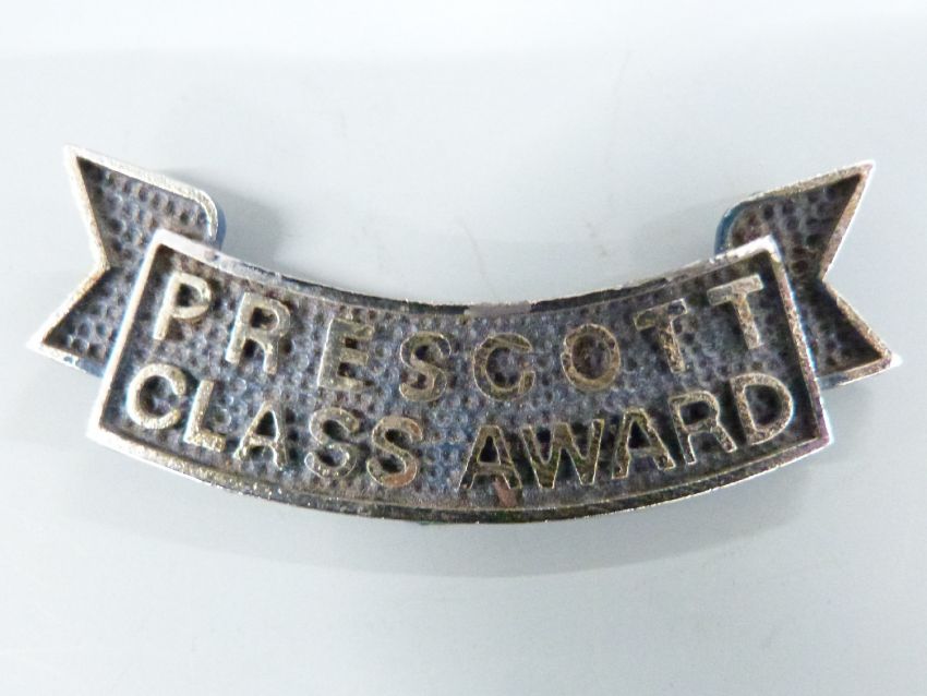 Bugatti Owner's Club trophy formed as a Bugatti radiator, height 12cm together with a Prescott Class Award metal scroll